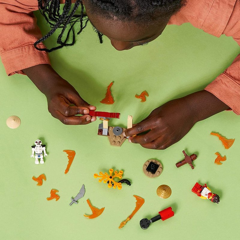 - Ninja playset features 2 minifigures: a new Kai and a Legacy Skulkin from Seasons 1 and 2 of the LEGO NINJAGO TV series and 4 red weapons