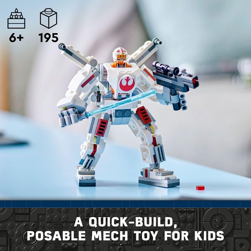 - Quick-build LEGO Star Wars Luke Skywalker X-Wing Mech – Introduce kids to the LEGO Star Wars universe with this easy to build Luke Skywalker toy mech for play and display