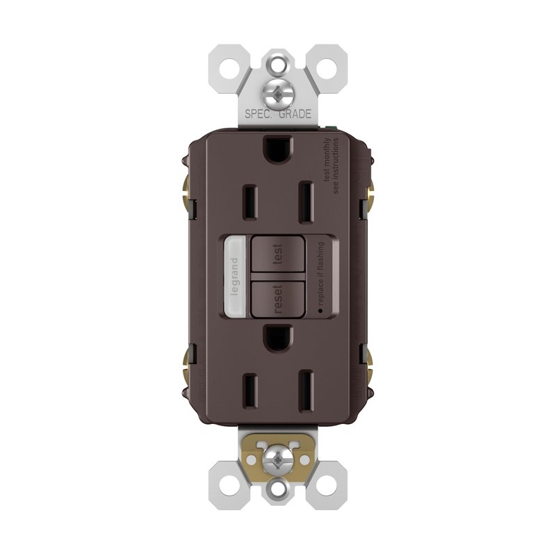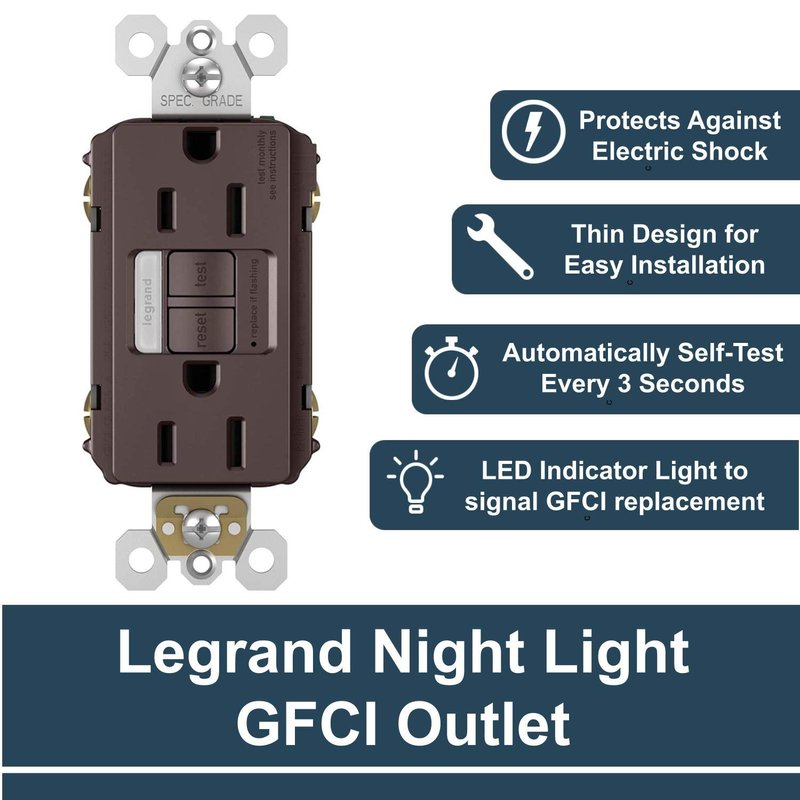 - Included - 1 Legrand - Pass & Seymour dark bronze GFCI outlet with GFCI outlet 15 amp and self-test GFCI outlet for GFCI outlet with night light