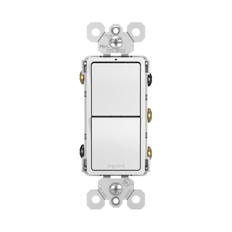 - Included - 1 Legrand - Pass & Seymour Radiant white rocker wall switch with 2 3-way switches in a 15 amp rocker combination outlet