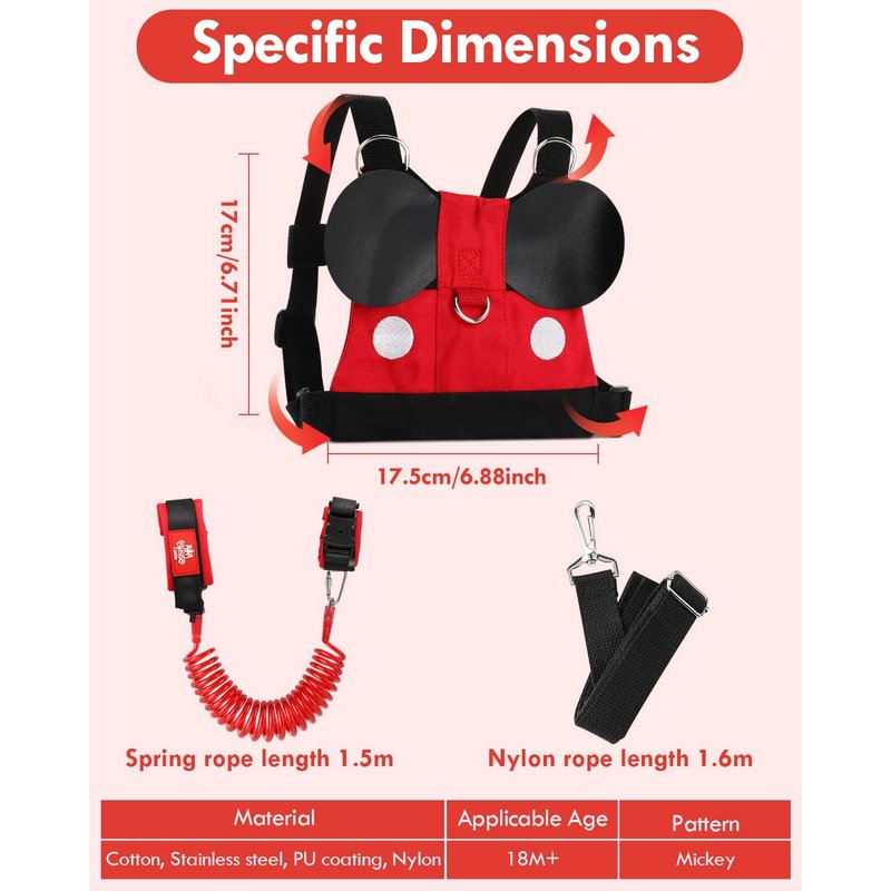 Lehoo Castle Toddler Leash for Walking, Baby Leashes for Toddlers Boys 4-in-1, Kid Harness with Leash, Child Safety Leash Anti Lost Wrist Link (Mickey)
