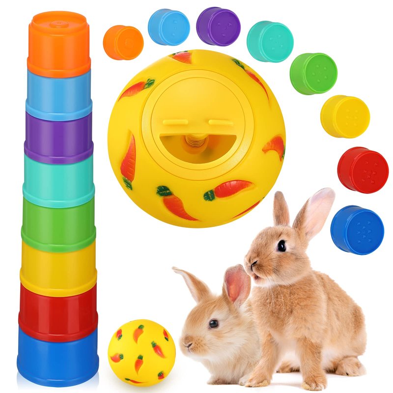 - Rabbits Treat Cup and Treat Ball: the rabbit toys stacking cups and treat ball can be applied to hold your rabbits' favorite kibble or small treat like diced carrot, dried fruit or herbs inside the cups, keeping your rabbits entertained for hours and keeping mentally and physically healthy