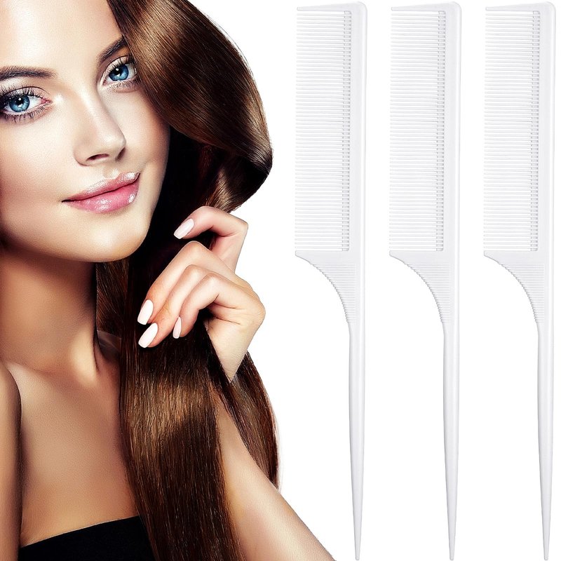 Leinuosen 3 Pack Tail Comb Carbon Fiber Rat Tail Styling Comb Heat Resistant Anti Static Teasing Comb for Back Combing Root Teasing Adding Volume Evening Styling (White)
