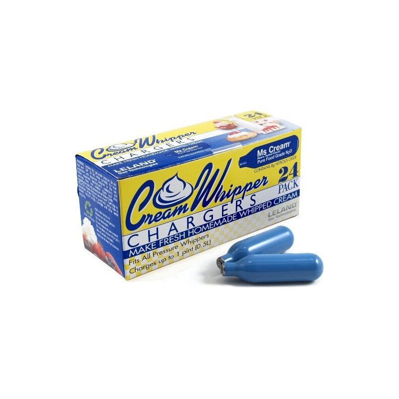 Make fresh homemade whipped cream with the Leland stainless steel cream whipper N2O chargers. These cream whipper chargers are made of pure nitrous oxide that is food grade safe and triple filtered. Able to be used in all pressure whippers, the dessert and cooking possibilities are endless. This set includes 240 chargers that each hold eight grams of pure nitrous oxide.