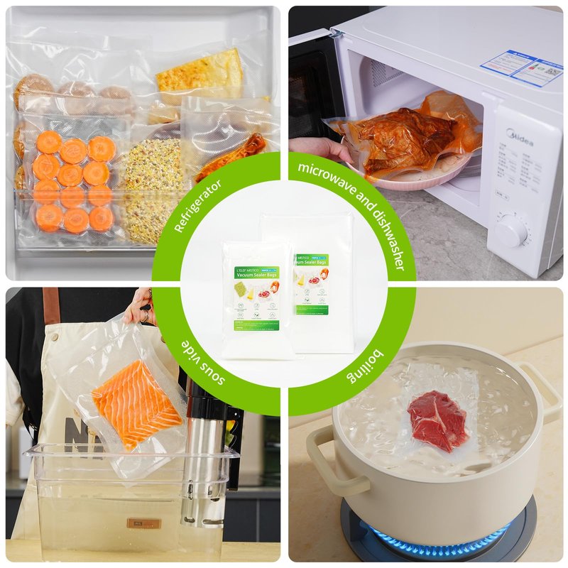 - 👍【Good Compatibility】Machine Compatibility: Most well-known vacuum sealer brands support the use of embossed vacuum bags, such as Foodsaver, Breville, Anova, etc. Reusability: Our embossed vacuum bags can be reused after cleaning, which enhances their practicality and economy.