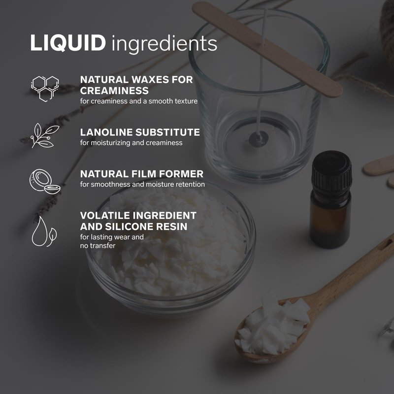 - REVOLUTIONARY FORMULA - natural waxes for creaminess and a smooth texture; lanoline substitute for moisturizing and a soft sensation; a natural film former for smoothness; volatile ingredients and silicone resin for lasting wear