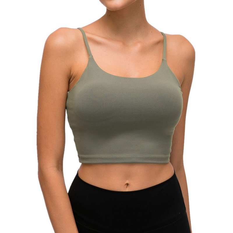 Lemedy Women Padded Sports Bra Fitness Workout Running Shirts Yoga Tank Top (M, Olive Green)