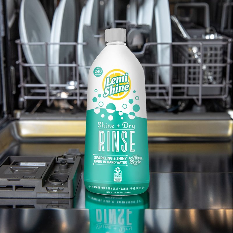 Bring back the shine with Lemi Shine Shine and Dry Natural Rinse Aid. Our shine and dry formula is powered by natural citric acid resulting in naturally shiny dishes. Lemi Shine Rinse removes residual hard water deposits like iron, calcium, lime and rust during the final rinse cycle. Fight hard water stains on your dishware! Do you want perfect, spotless, streakless, speechless dishes and glassware? Add a natural rinse aid to your dishwashing routine. No need to run the heated dry cycle, which saves energy, money, and time.