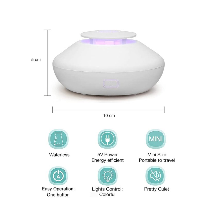 LEMON + Co. Humidifier Ultrasonic Aromatherapy Waterless Diffuser White Cool Mist Air Aromatherapy Essential Oil Diffuser for Office, Home, Bedroom, Living Room, Yoga, Spa; Multiple Lighting Options