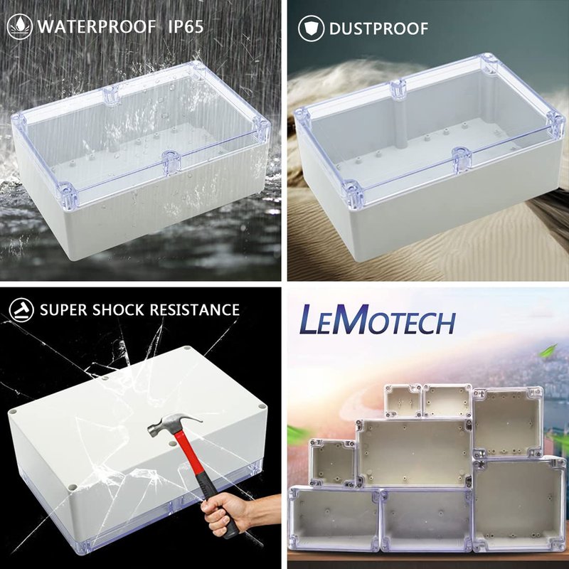 LeMotech ABS Plastic Junction Box Dustproof Waterproof IP65 Electrical Enclosure Box Universal Project Enclosure Grey with PC Transparent Clear Cover 9 x 5.9 x 3.4 inch(230 x 150 x 87 mm)