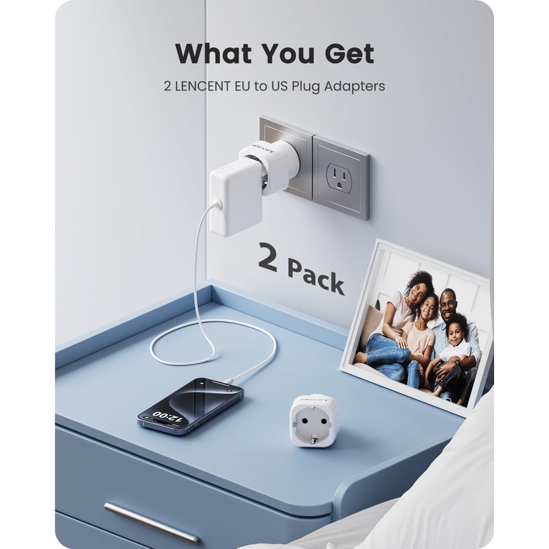 - What you get -2 Pack European plug to US adapter, 1*User Manual.