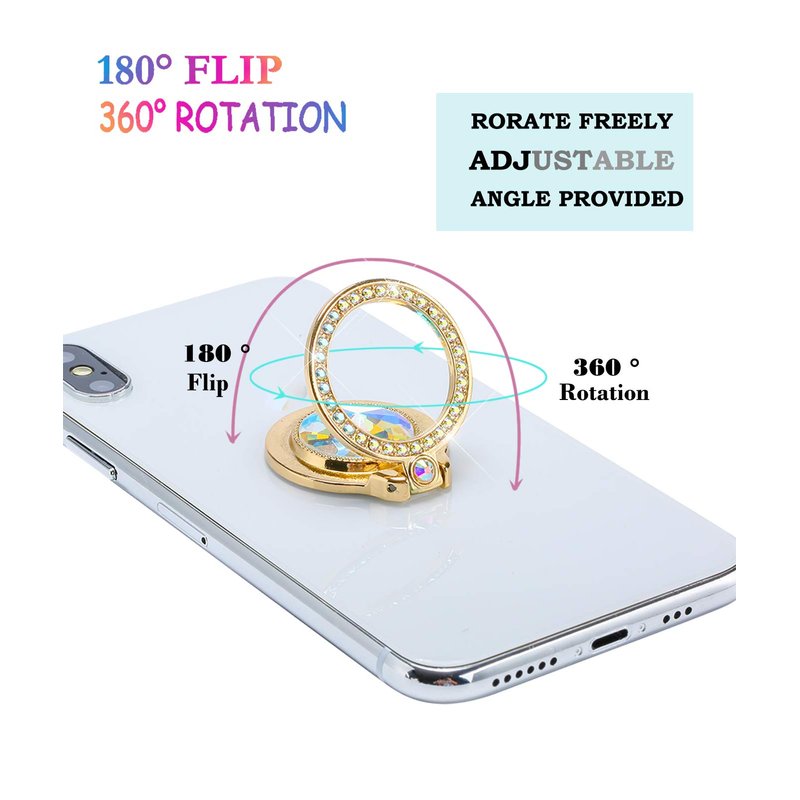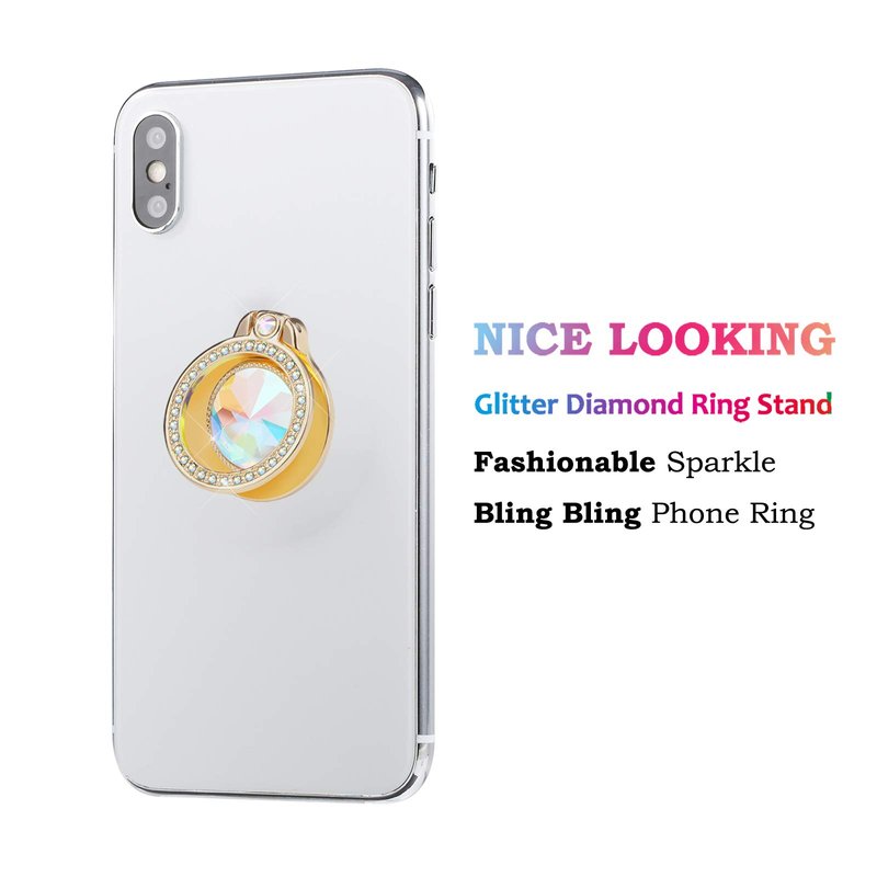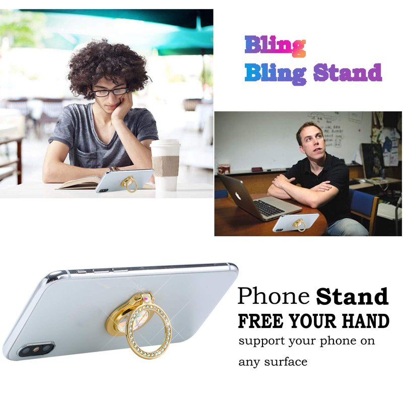 - 【Bling Phone Ring Stand 】: Gold bling bling crystal phone ring holder helps hold your phone firmly.Also finger ring grip and stand helps see video and photos with 360 rotation stand angle.