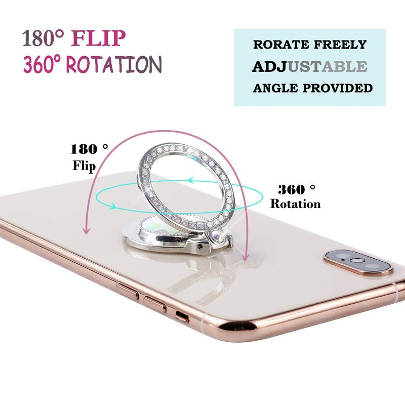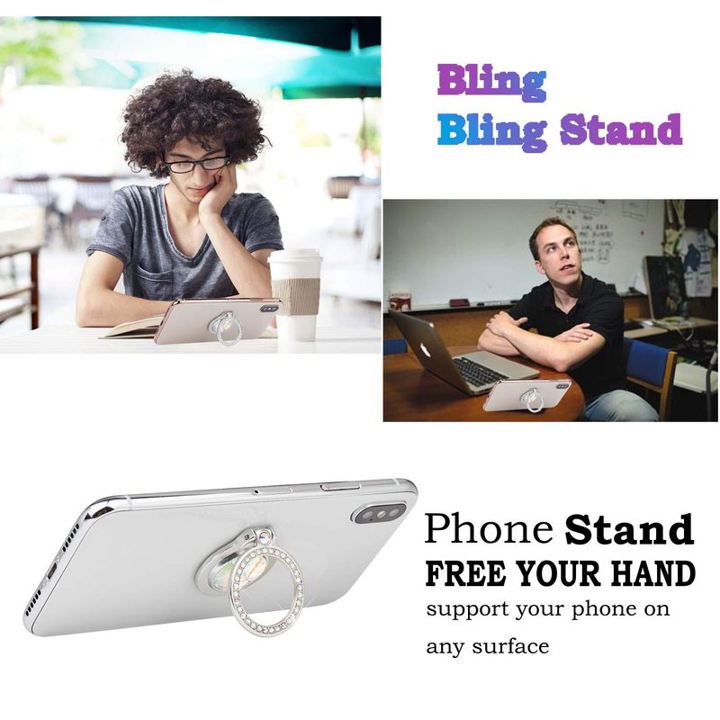 - 【Bling Phone Ring Stand 】: Silver bling bling crystal phone ring holder helps hold your phone firmly.Also finger ring grip and stand helps see video and photos with 360 rotation stand angle.