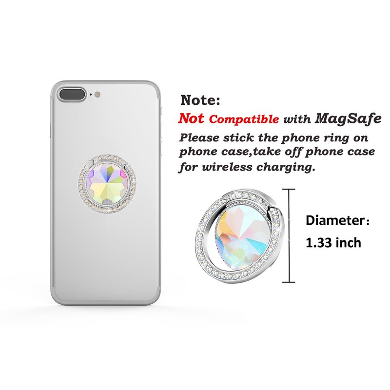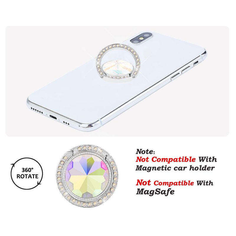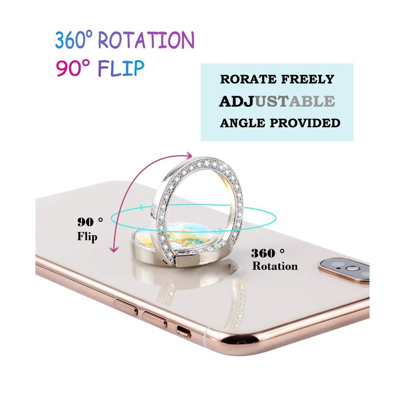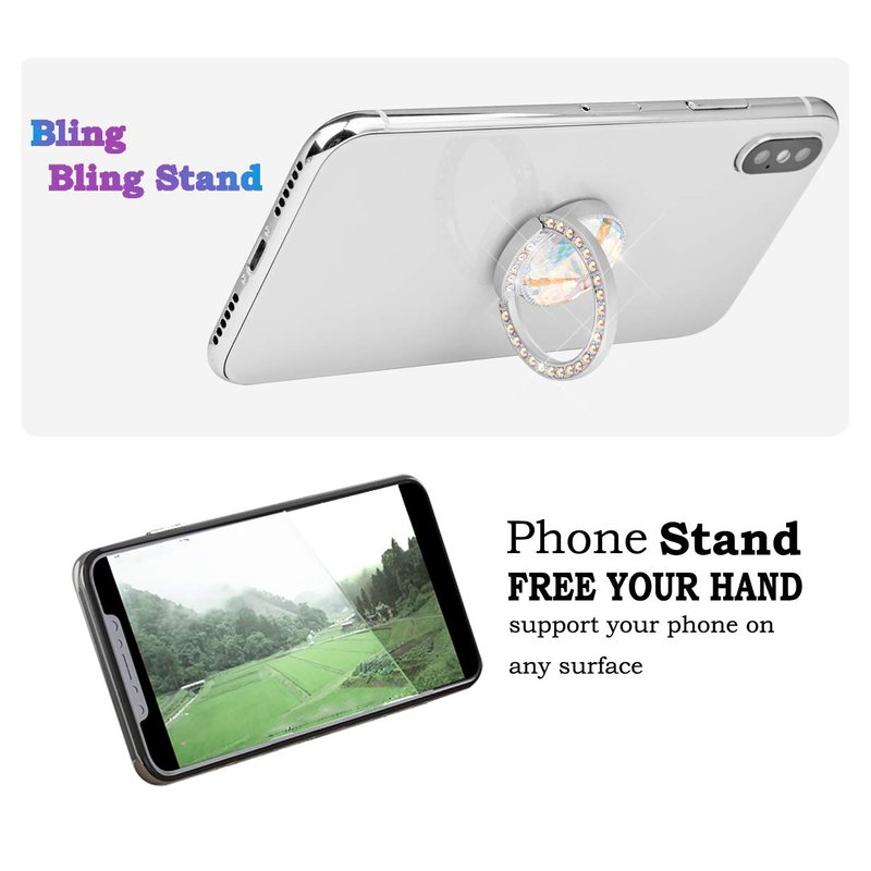 - 【Bling Phone Ring Stand】: Bling bling silver phone ring holder helps hold your phone firmly.Also finger ring grip and stand helps see videos and photos with 360 rotation stand angle.
