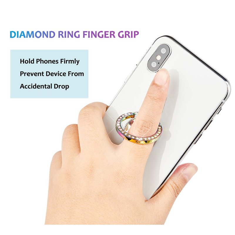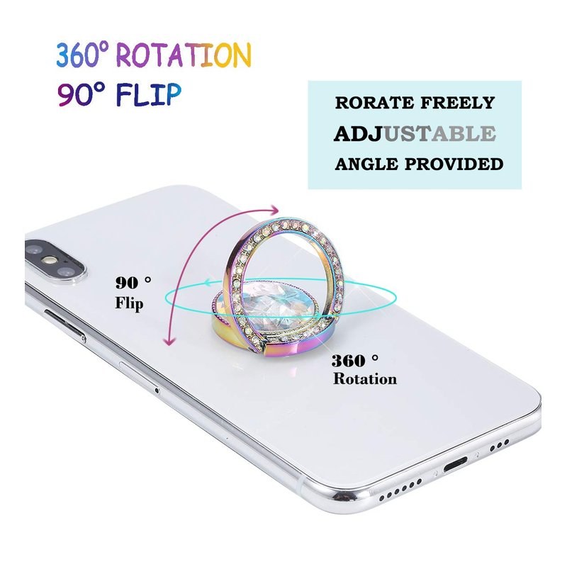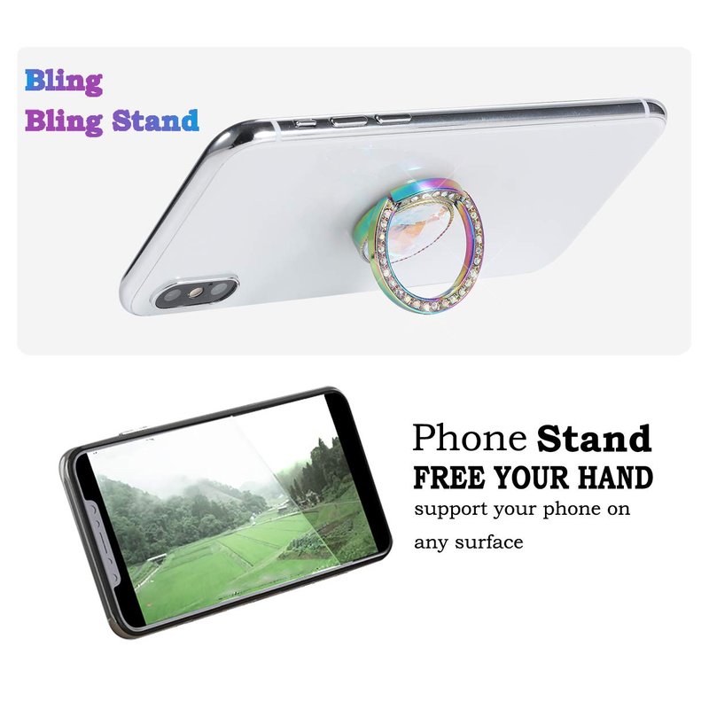 - 【Bling Phone Ring Stand 】: Bling bling crystal phone ring holder helps hold phone firmly.Also finger ring grip and stand helps watch video and photos with 360 rotation stand angle.