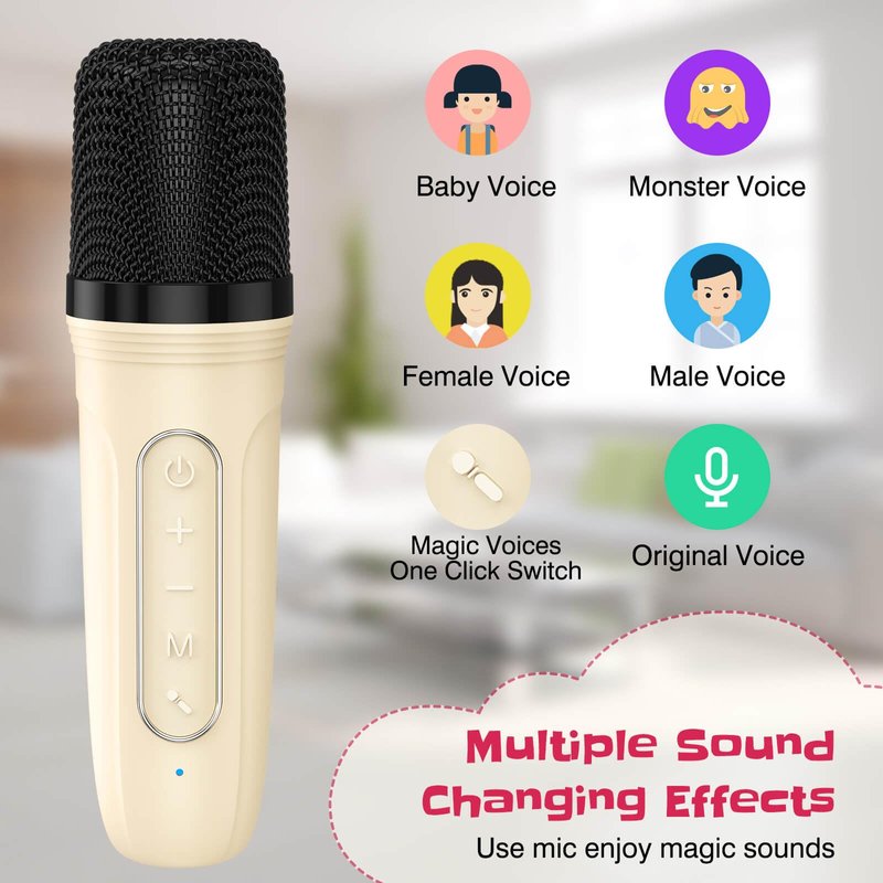 - Novelty Gifts: Karaoke machine with 4 magic voices, can switch baby, monster, male , female, original voice with one click, adding more fun to kids.