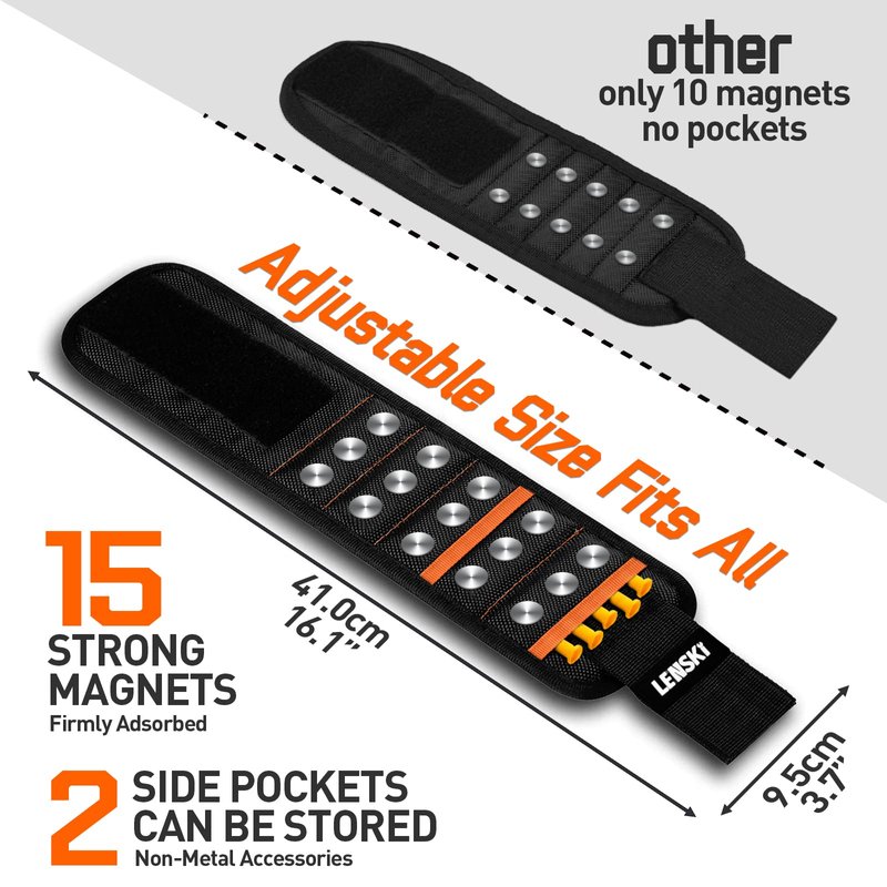 - đ§ăBest Gifts & Best Serviceă-Lenski magnetic bracelet has a double velcro strap, adjusting it to different sizes for both men and women. the knitted filling net is used in the wrist contact area to keep our wrist ventilated and comfortable for work.