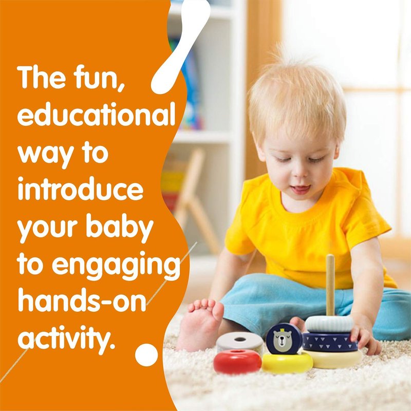 - β€ β π-ππππ ππππππππ πππππ π ππ ππ πππππ ππππ: This uniquely designed toddler stacking tower comes with 6 different colored and patterned rings that neatly stack on top of one another. At the top, a fun purple lion piece sits perfectly as the crowned item, making the whole wooden tower fun to look at and even more fun to touch.