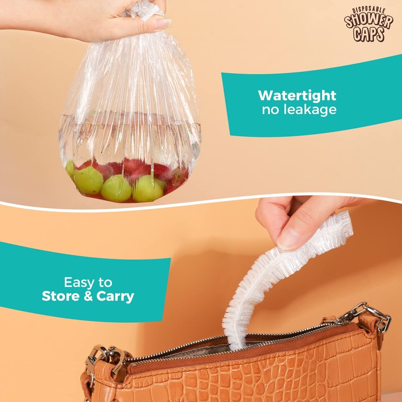 - Easy to Store & Carry: Contracted shower cap, every plastic hair cap is folded into a small stick, soft and pretty light, well save storage space, and great for carrying, portable. Terrific disposable shower caps for travel.