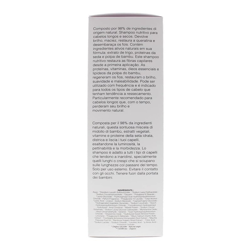 - 98% NATURAL INGREDIENTS - Bamboo shoot extract; conditions, fortifies, rich in trace elements. Garlic extract; Purifies scalp. Wheat protein extracts; Hydrates, protects, fortifies.