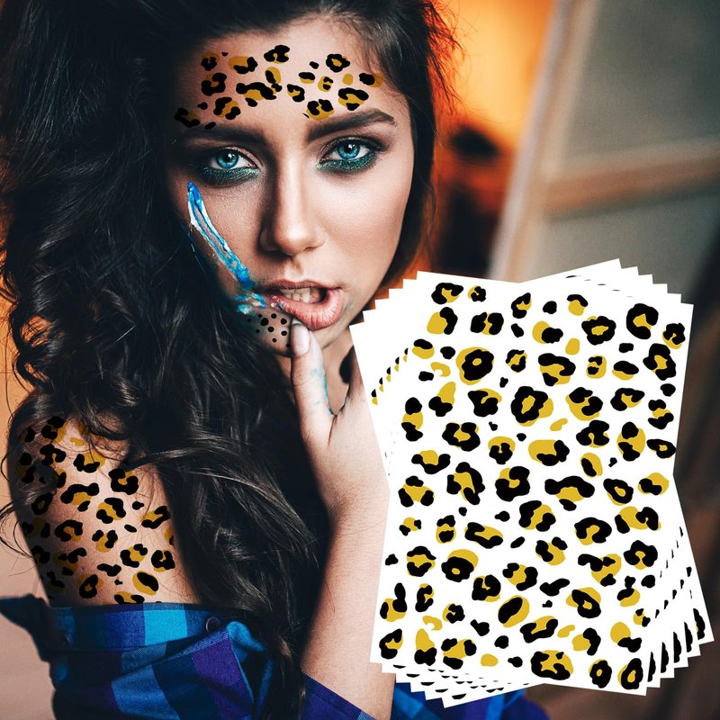 - EXQUISITE DESIGN::-- These LEOPARD FACE TATTOOS showcase intricate TRIBAL TATTOO patterns, perfect for adding a touch of wildness and mystery to your HALLOWEEN look. Whether you're dressing up as a fierce jungle cat or simply want to make a bold statement at parties, these tattoos are a must-have accessory. The product's size is 5.5x6.8 inches, providing ample coverage for your face or other body parts, ensuring a striking and realistic appearance.