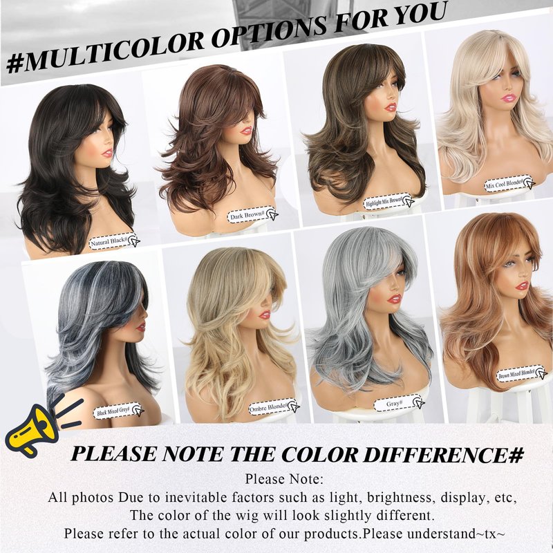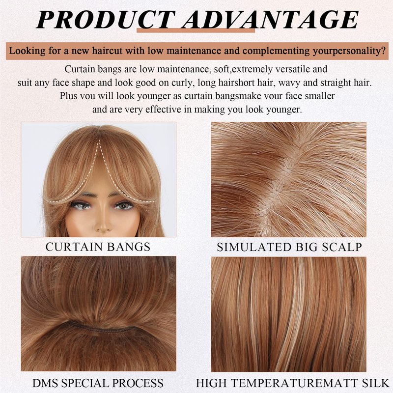 - Curtain Bangs Layered Wig Premium Material:The Black Layered Wig is Made of Quality Heat Resistant Synthetic High Temperature Matte Silk and Simulated Big Scalp and Special Process;Layered Bangs Hairstyle for Round Various Face Shapes ;Natural ;Soft