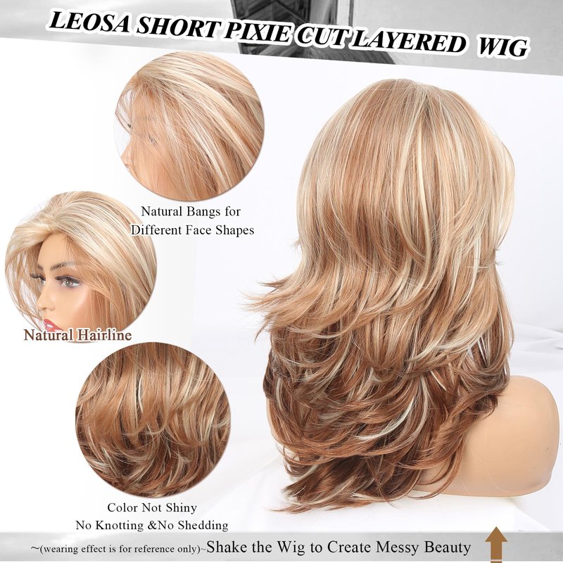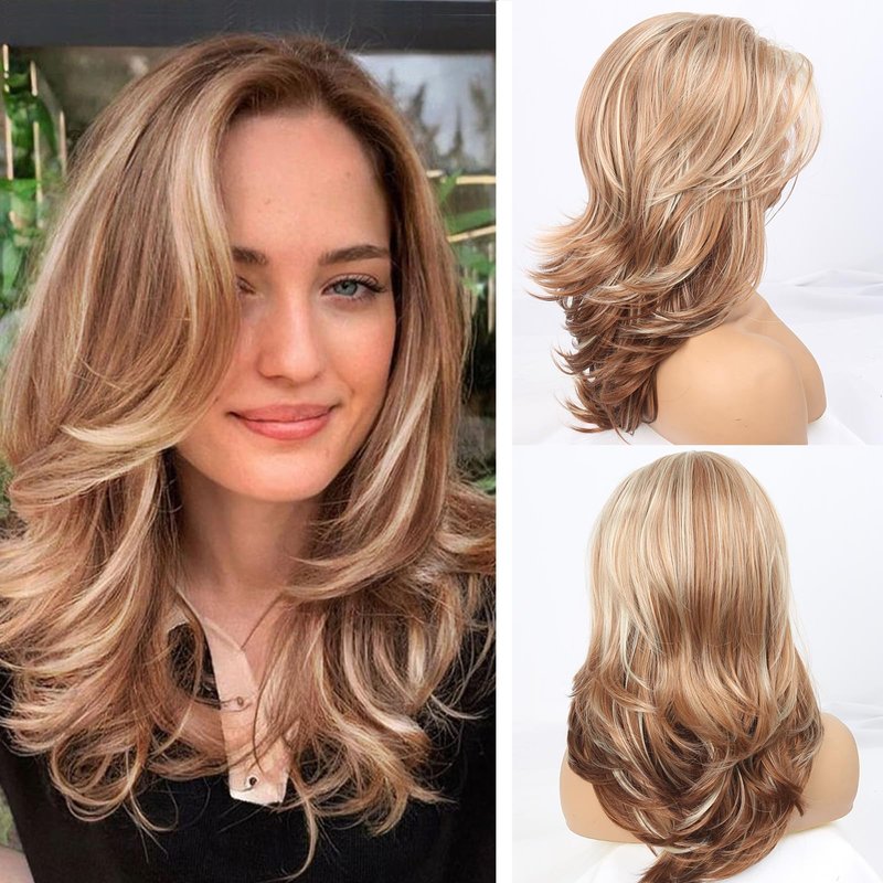 LEOSA Honey Blonde Wig Long Haired Layered Wig Strawberry Blonde Synthetic Wavy Blonde Wigs for White Women Mixed Blonde Wig Real Hair Ombre Blonde Wig for Daily Party Use