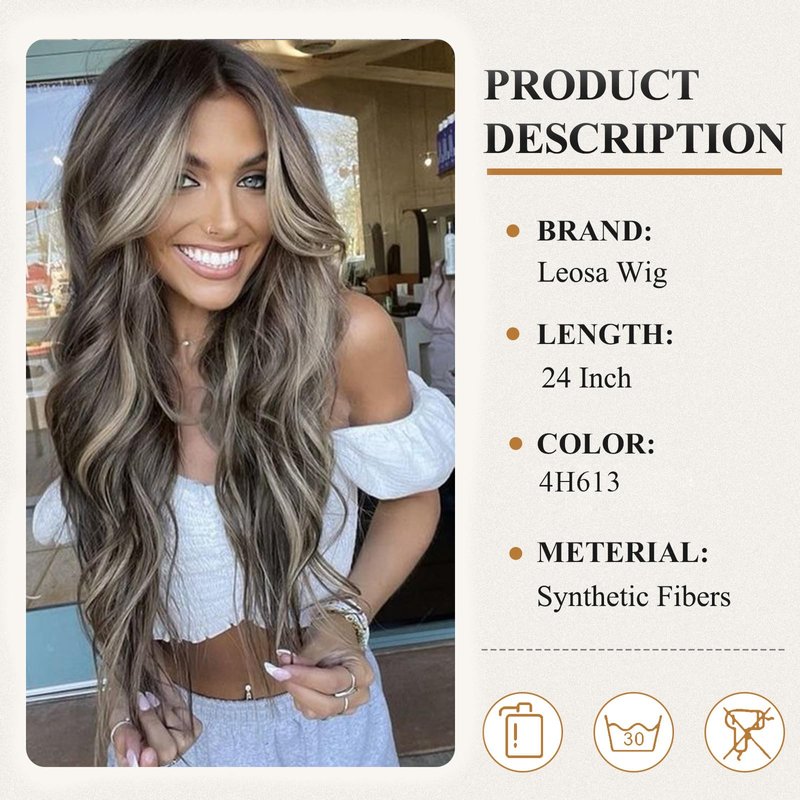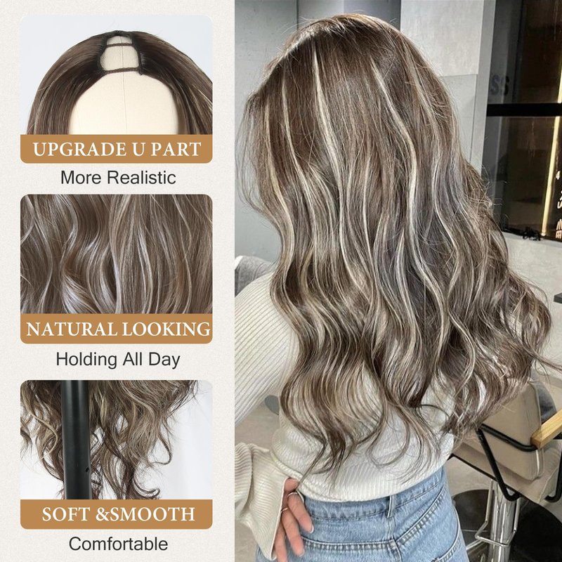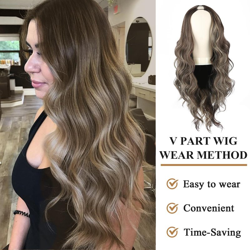 LEOSA V Part Wig Body Wave Upgrade V/U Part Synthetic Wigs for Black Women Long Full Head Clip In Hair Wig Glueless Wigs Synthetic Wigs For DaiLY Use (Mix Blonde, 24Inch)