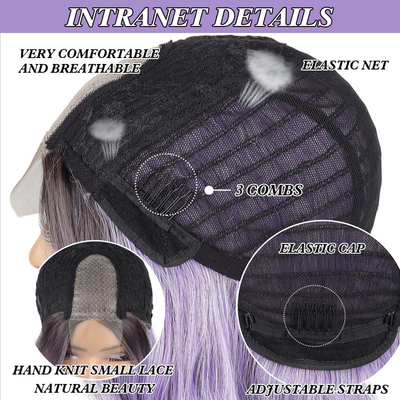 - High-Quality Synthetic Wig: Short Purple Lace Frontal Wig; Easy to Wear; Silky; Less Tangled; Less Shedding; It's Your Choice for Daily Wear; Working; Dating; Concerts; Cosplay Theme Parties