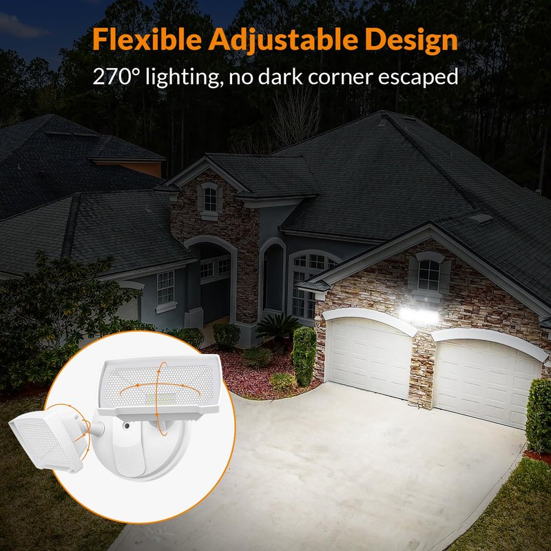 - Adjustable Design: It’s easy & flexible to adjust the 2 bright LED light heads to a different angle as your requirement, this outdoor LED flood light brings extra safety to your home