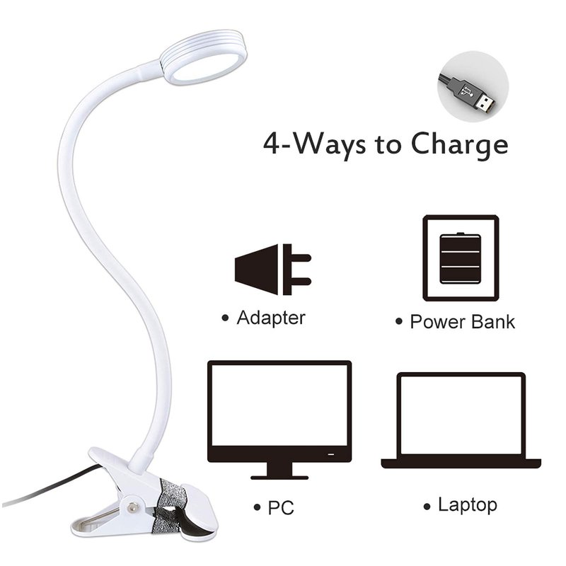 - A 2-prong USB AC adapter and 5 feet cord are provided to support the clip on light. FCC listed quality saves your worry. Can be used with normal 110V household current.
