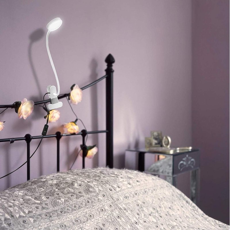 LEPOWER Clip on Light/Book Light/Reading Light with 2 Color Changeable/Night Light Clip on for Desk, Bed Headboard and Computers (White)