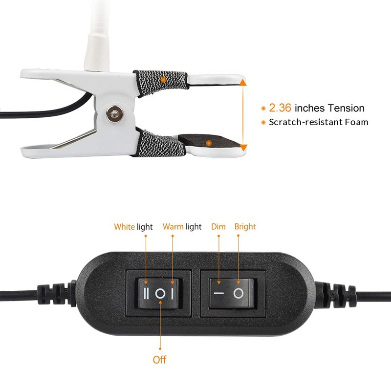 - Clip on: Brighten up with the click of a switch on the cord and perfect for Table, Desk, Bed headboard and Computers.The maximum width of this bedside lamp for clip:2.36 inch.