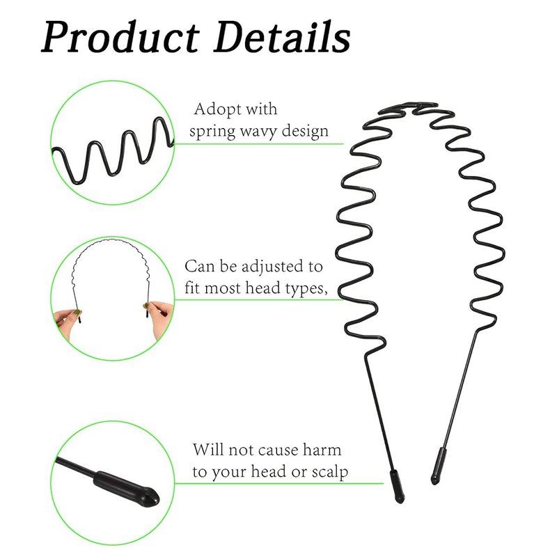 headbands for men / mens headband / zig zag headbands / headband for men / zigzag headband / hair headband / hairband for men / wire headband / wavy headband / diadema para hombre / headbands for curly hair / hair clip headband / hair holder / hair band with clips / mens hairband / head band with clips / head band for men / mens hair bands long hair / male headband / male headband / male headband / plastic hair band / hairband with teeth / hairband with teeth We are a professional manufacturer of fashion hair bands and personalized headbands. We are committed to providing good quality products and services to our customers. --Product Benefits. 1. The hair bands are made of rust-proof metal, which is very strong and difficult to be broken. Each headband has 2 protective sleeves on both sides to make it safer and more comfortable. 2. The metal headband has many wavy and spiral teeth, so it has a good grip, which helps to hold the hair firmly to ensure that the hairband will not slip off easily in the hair. 3. Suitable for most age groups of men and women, it is very lightweight, suitable for fitness and various ball sports, running, cycling, hiking, etc.. Also suitable for daily wear: yoga, laundry, bathing, beauty, dancing, attending parties, etc. 4. When you feel it has deformation or asymmetry on both sides, too big or too loose, you can hold it on both sides and bend it inward, and it will become smaller. When it is too small or too tight, stretch it outward and it will become wider, making it fit your head shape better and can be bent and freely adjusted as you like.