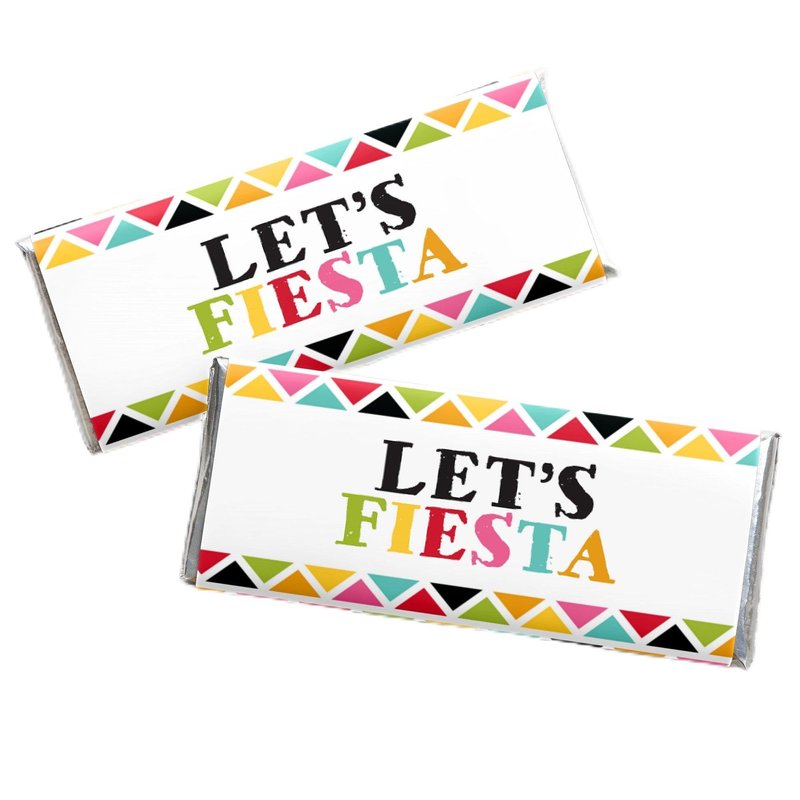 - Let’s Fiesta Standard Candy Bar Wrapper Kit INCLUDES 24 chocolate bar wrappers and 24 foils, perfect for styling an adorable Mexican fiesta candy buffet or unique Cinco de Mayo, baby or bridal shower, or Mexican birthday party favors.