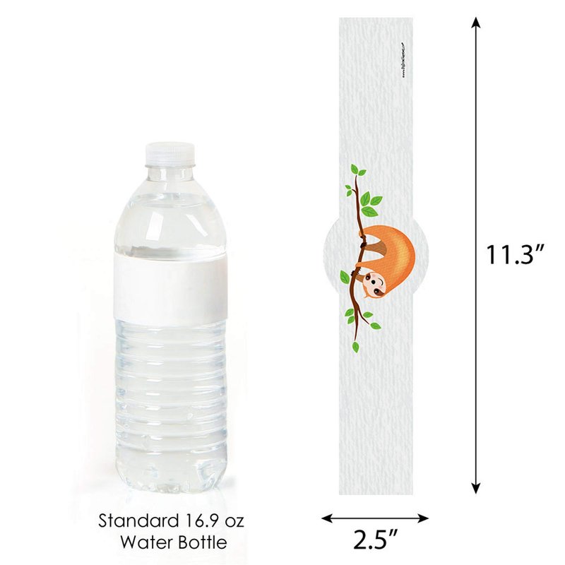 Our Let's Hang - Sloth do it yourself party favor wraps are a versatile party supply that will help you easily style the perfect party. These DIY wrappers are fun beverage wraps that will cover up unsightly labels on water bottles, juice containers or cans of soda - any item that is less than 11" circumference, and dress up place settings when used as napkin wraps. You can also them to make party favors. Our unique design lets you change their size, allowing you to wrap them around items ranging from 7" around to 11" circumference. Enjoy decorating your party with our original DIY party wrappers.