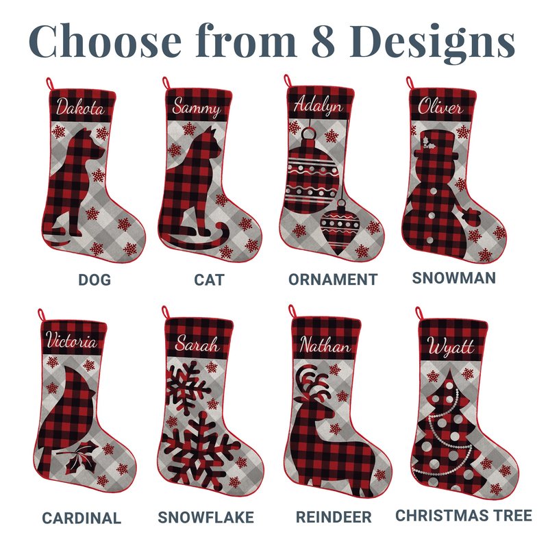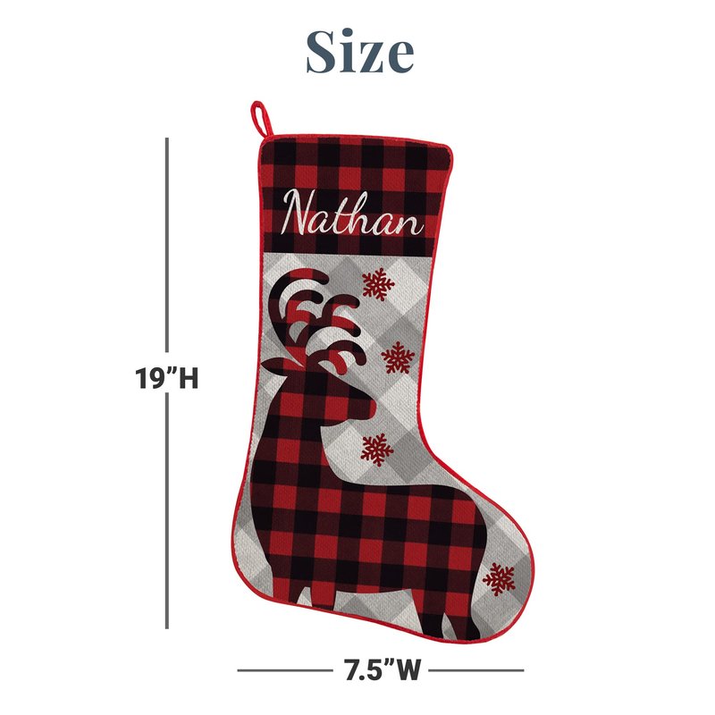 - CELEBRATE THE HOLIDAYS WITH STYLE: They'll never forget whose stocking is whose when their name appears prominently on it! The red plaid design results in bold and graphic look for the mantel kids and adults will love.