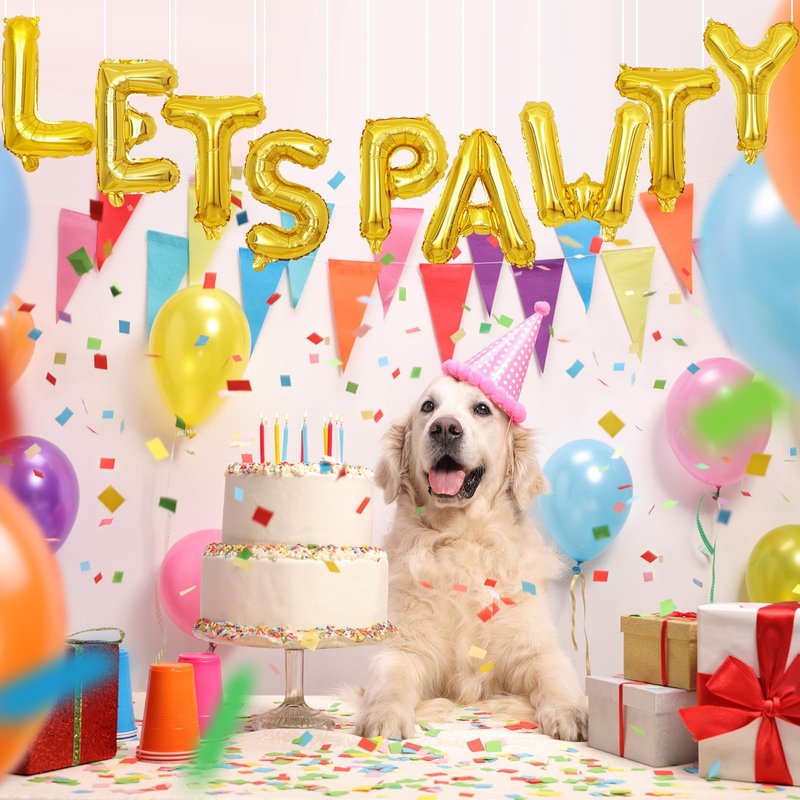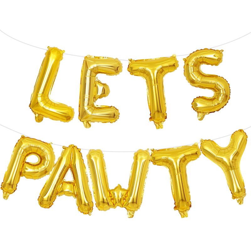 - WHAT YOU WILL GET: 40 inch let’s pawty letters balloons Gold, 1 roll ribbon, 1 pcs straw. It’s ideal for creating memorable decorations for your pet’s special day.