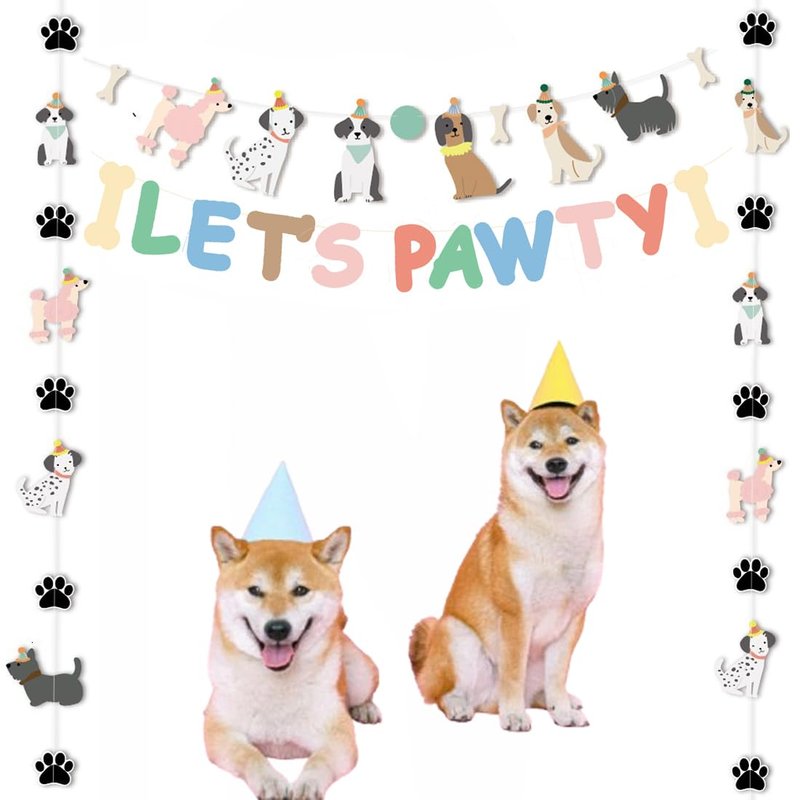 Let’s Pawty Banner Dog Birthday Party Decorations Puppy Pet Dogs Cats Happy Birthday Paw Print Sign Photo Backdrop. Puppy Themed Decor: Perfect for dog birthday parties, pet adoption events, baby showers, and more.