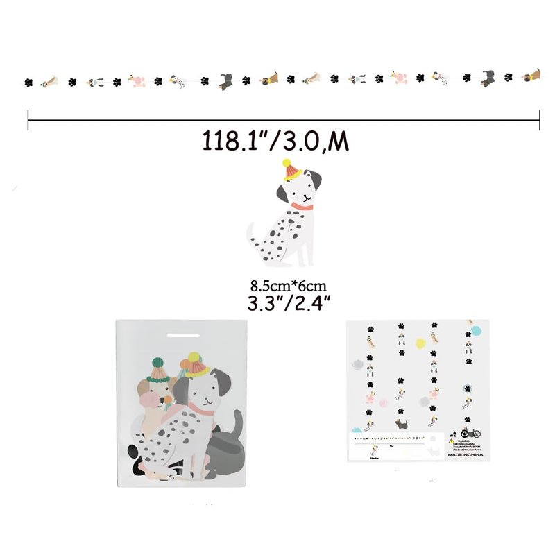 - ❤ The Banner size - the Lets Pawty banner , Lets Pawty banner length is 2.5M/8.2ft,. the dog banner , dog banner length is 2.5M/8.2ft, Dog size is 7*4inches.