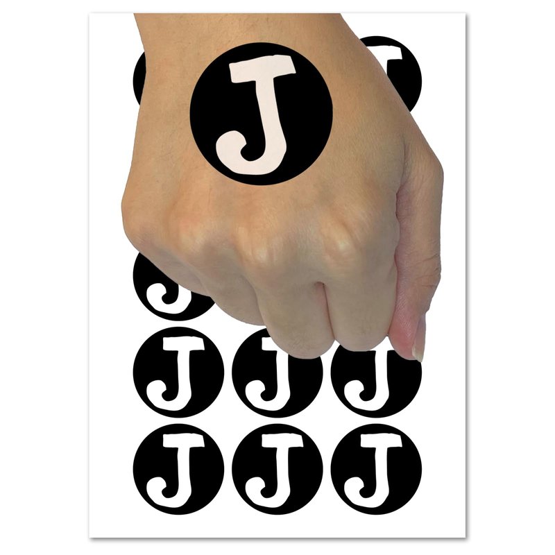 Letter J Uppercase Cute Typewriter Font Temporary Tattoo Water Resistant Fake Body Art Set Collection - 54 1" Tattoos (1 Sheet)