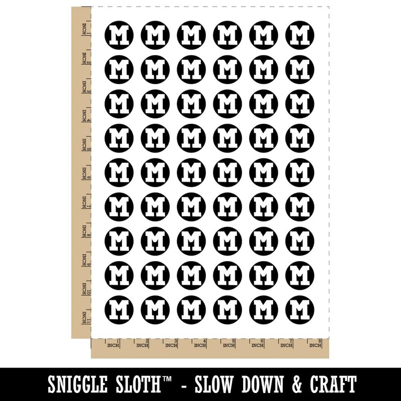 Letter M Uppercase Fun Bold Font Temporary Tattoo Water Resistant Fake Body Art Set Collection - 54 1" Tattoos (1 Sheet)