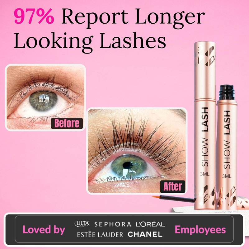Longer/ Fuller/ Thicker looking eyelashes. Applied like eyeliner once each day, Incredible value. Each bottle of Show Lash lasts 3-4 Months. Can be used with extensions. Formulated by 3 Medical Doctors and 5 Scientists. Made in the USA, cruelty free. Works on eyebrows too! Show Lash eyelash serum is different than an eyelash growth serum. WARNING: Do Not Get into the eyes. In the event of contact, rinse with cold water. No Not use if you are pregnant or nursing, or under the age of 18. Keep out of reach of children. If redness or irritation occurs, stop use. Consult your physician if you are being treated for eye related conditions.