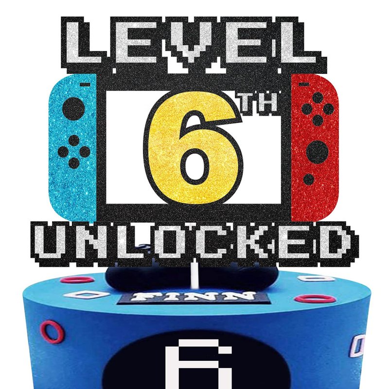 Level 6th Unlocked Cake Topper - Level 6th game Sign Theme Party Decorations 6th happy Birthday Level Up Cake Decorations for Video Game Themed Kids Boy Girl Party Supplies