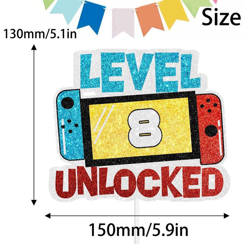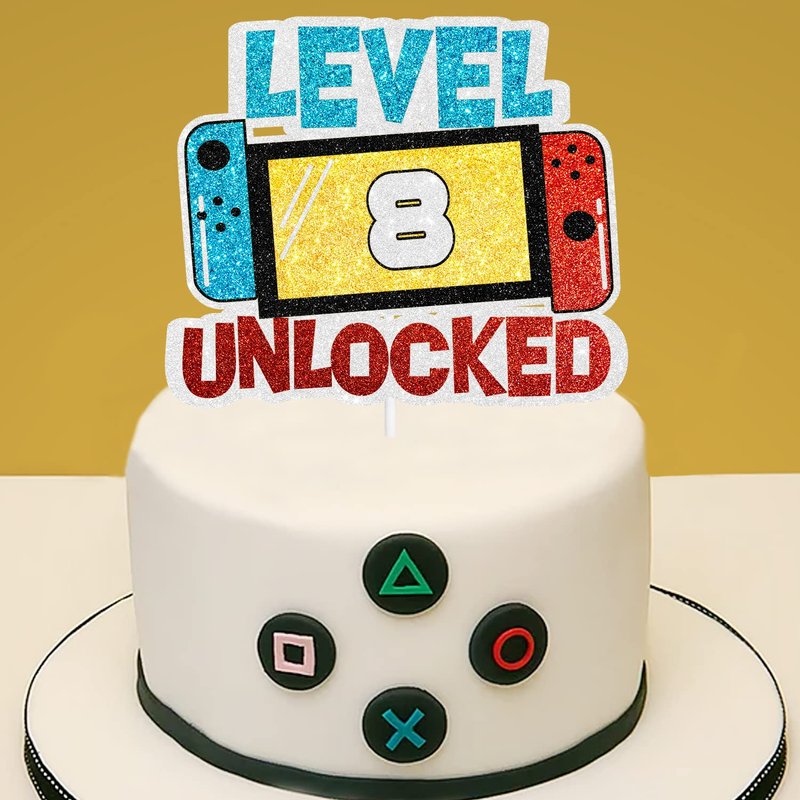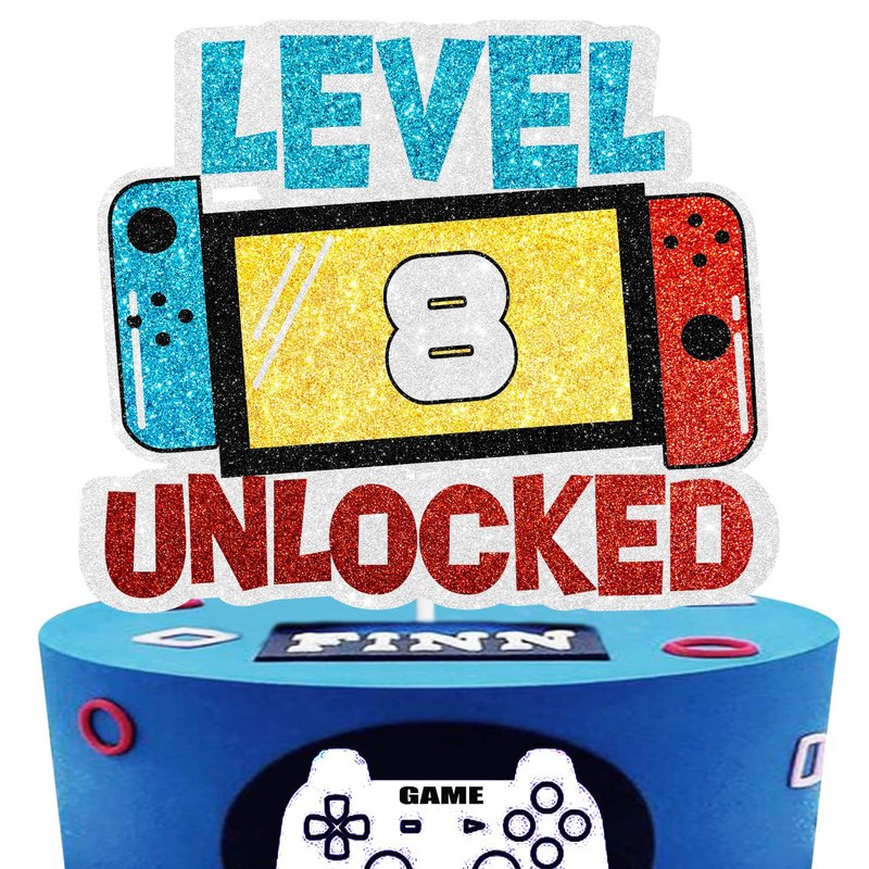 Level 8th Unlocked Cake Topper - Electronic Games Theme Boys Birthday Party Decorations Supplies - 8th Happy Birthday