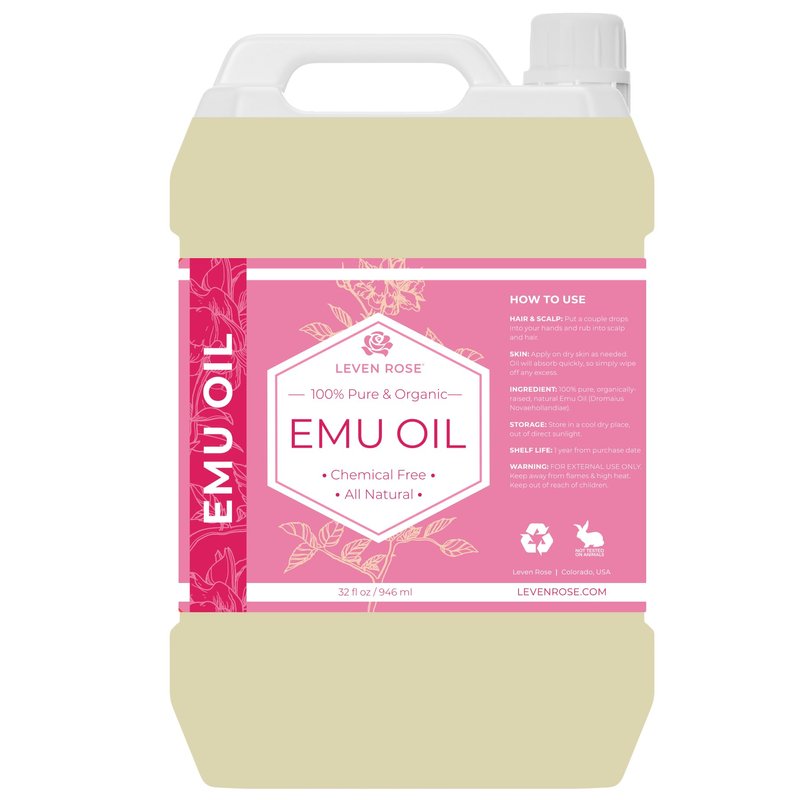 Leven Rose Emu Oil 32oz bulk, 100% Pure Natural Hair Strengthener Anti Aging Skin Moisturizer