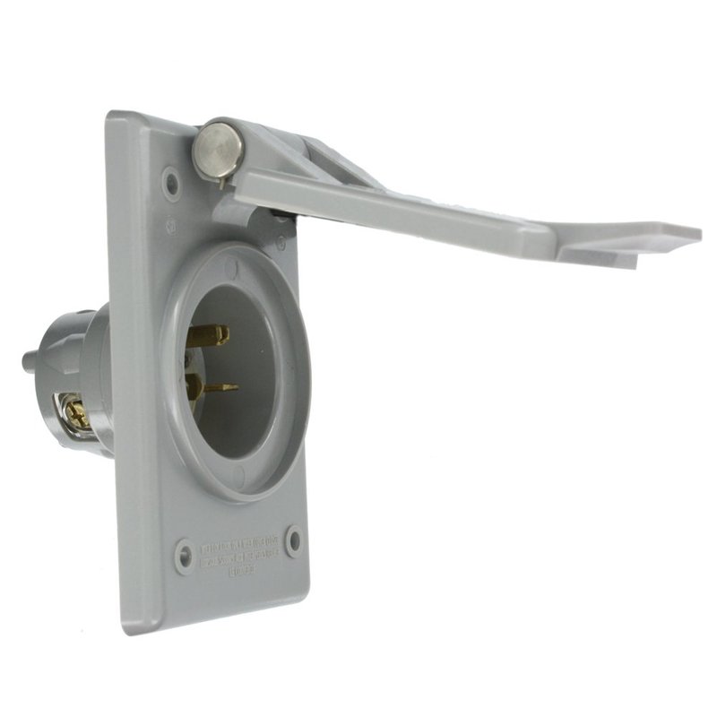 Leviton 5478-CWP 20 Amp, 250 Volt, Power Inlet Receptacle, Straight Blade, Industrial Grade, Grounding, Gray