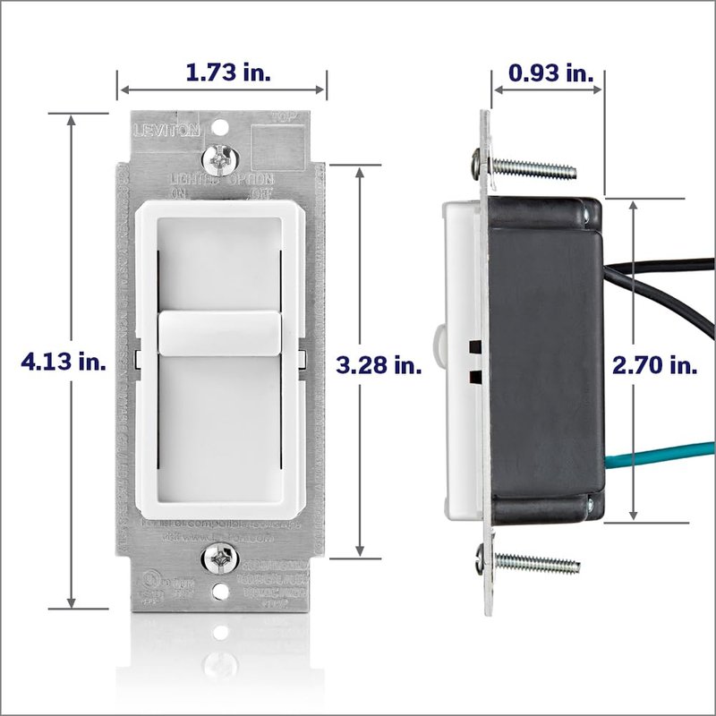 - EASY TO INSTALL - slim profile fits in most wallboxes. 150W LED, 600W incandescent/halogen. Works with existing wiring, no neutral wire required for installation
