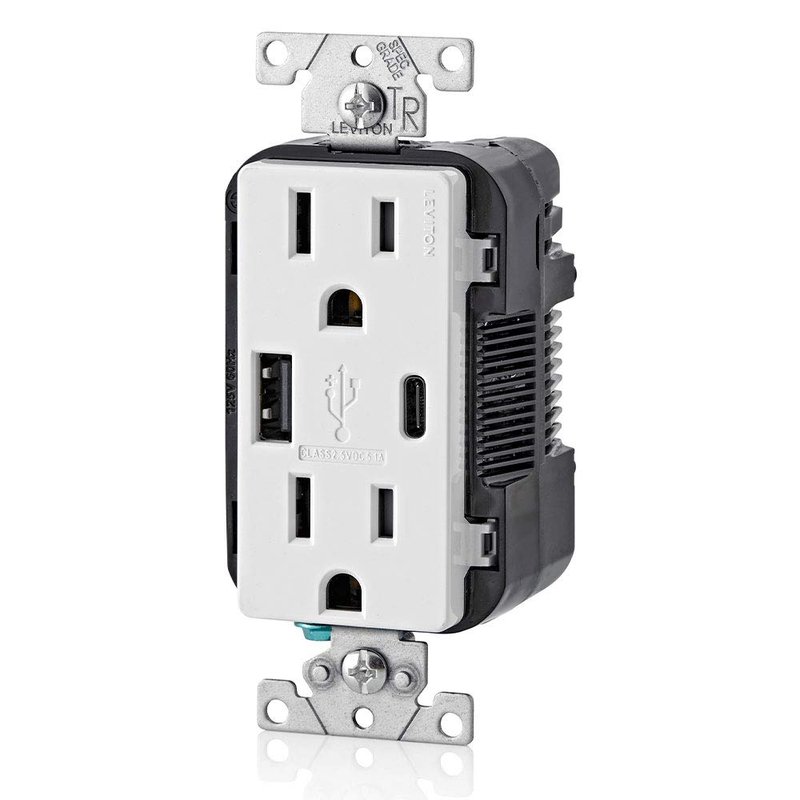 - SMART - Built-in smart chip recognizes the individual device’s charging requirements to optimize the charge (Does not provide Power Delivery. See Leviton T5635 and T5636)