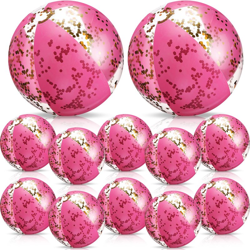 - Glitter Confetti Beach Ball: you can get 2 pieces 24 inch huge beach balls and 10 pieces 16 inch clear beach balls, all with glitter confetti inside, 12 pieces with 2 sizes could satisfy your needs of playing even as decoration, or play with your partners and family